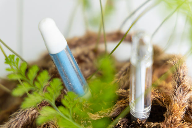 電池不要、土に挿すだけの「水やりチェッカー」