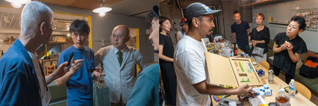 イベントの冒頭、古川氏はチョコ・ザイのコンセプトを説明し、「私たちにはこれを使って何を作るかというアイデアが特段あるわけではありません。皆さんのような作家さんに、これを見ていただいて、インスパイアされることがあればどんどん使っていただきたいと思っています」と話した。「よかったら見ていってください」の一声の後、めいめいが興味のある材料を手に取りながら、未来DESIGNのメンバーの話に聞き入っていた。
