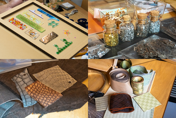 一口に端材と言っても、素材の種類はさまざまだ。金属や樹脂・アクリル、木材、皮革、紙、布、ガラス、陶器のほか、畳の材料であるイグサや縁(へり)の端材もある。どれも“規格はずれ”だが、元は規格品と同じで技術者・職人が厳選した素材だ。